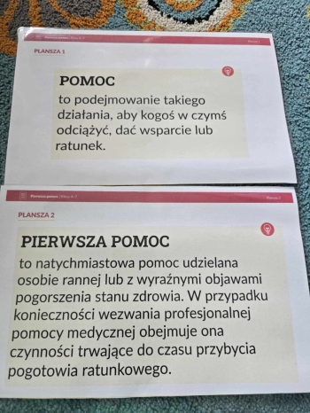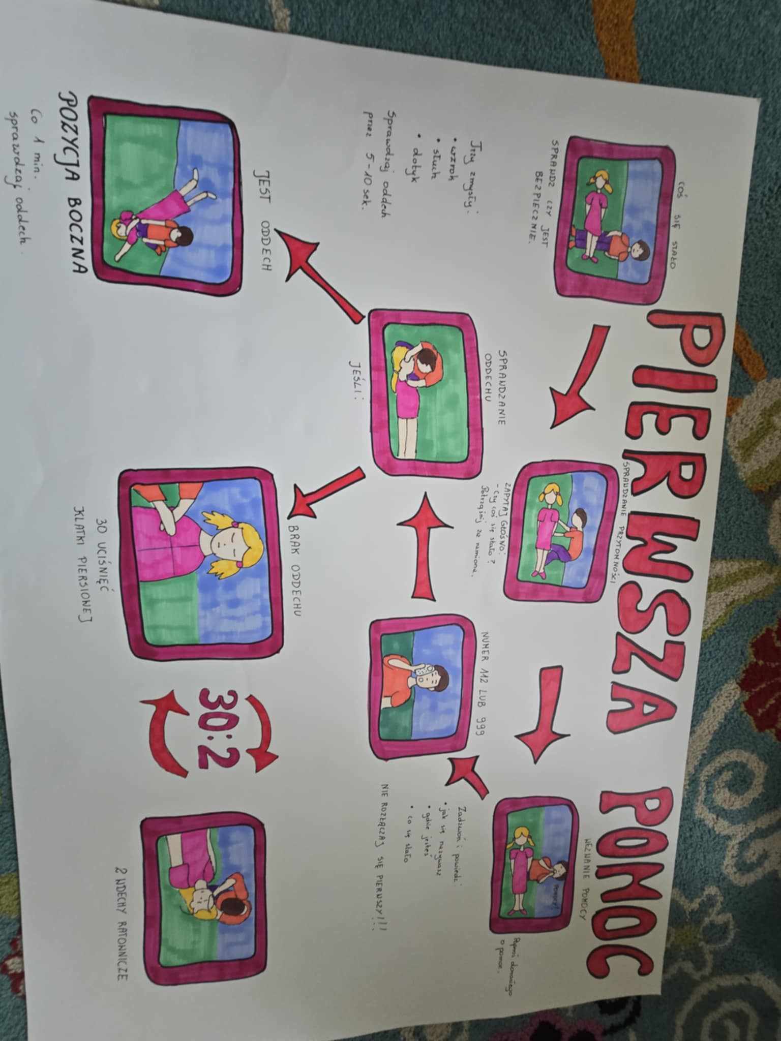 Udzielanie pierwszej pomocy jest jedną z najważniejszych umiejętności, które uczeń powinien zdobyć w szkole. Oprócz kształtowania umiejętności udzielania pierwszej pomocy istotna jest odpowiedzialność za jakość jej udzielania. Uczniowie klas III poznawali zasady udzielania pomocy przedmedycznej i rozwijali swoje umiejętności w tym zakresie poprzez działania praktyczne i scenki sytuacyjne. Wszystkie klasy z dużym zaangażowaniem i wielką powagą podeszły do tego tematu.