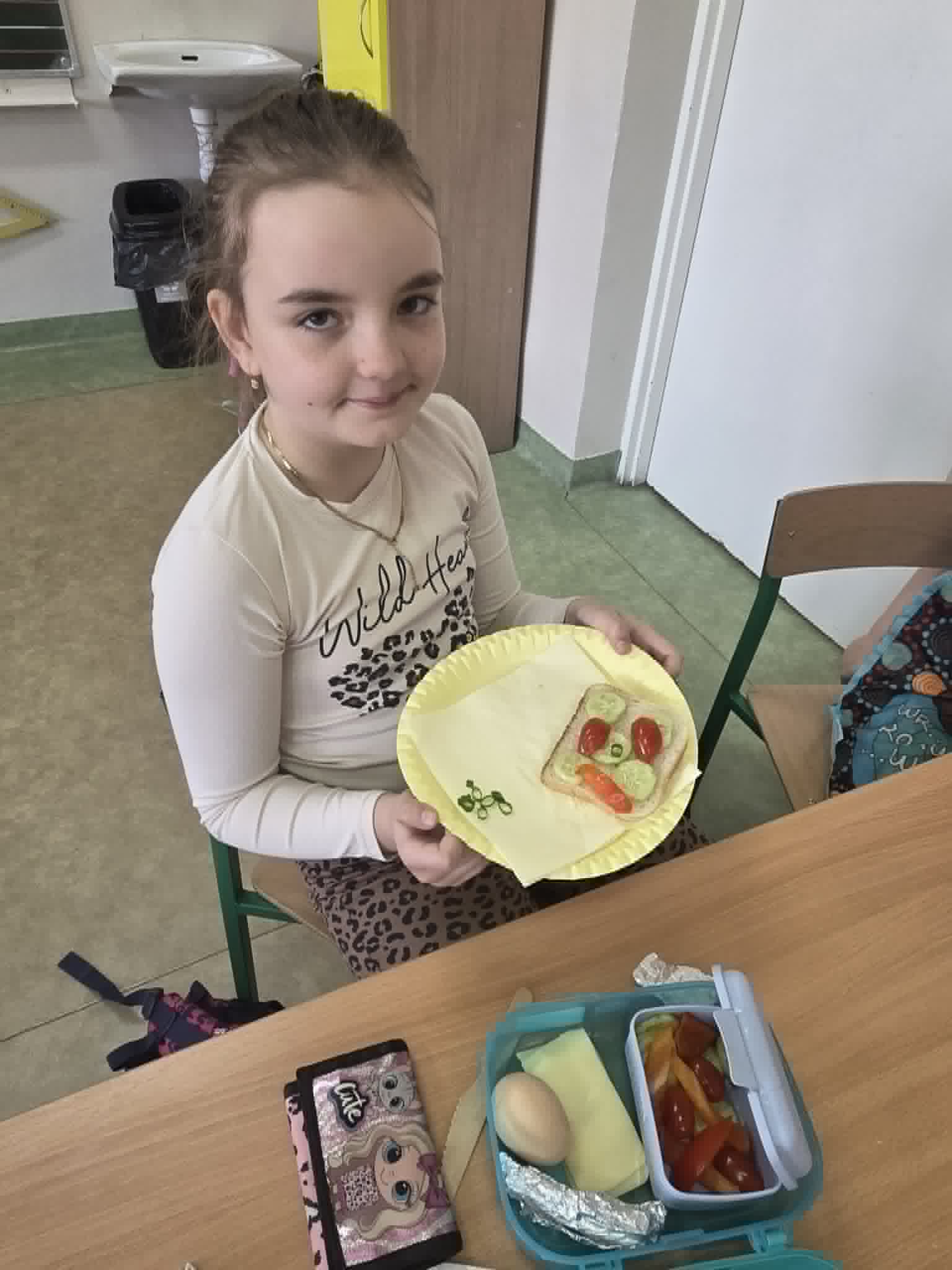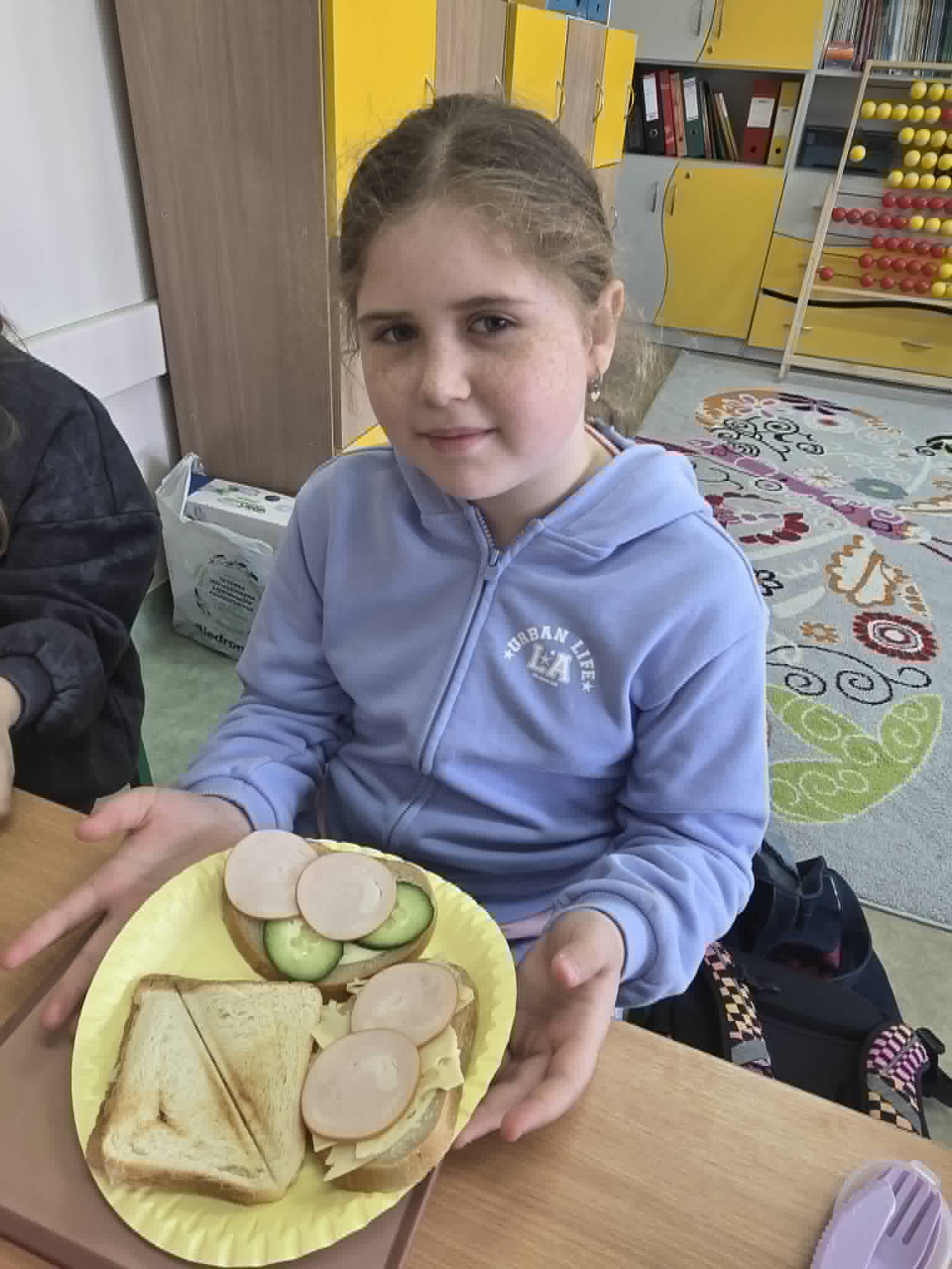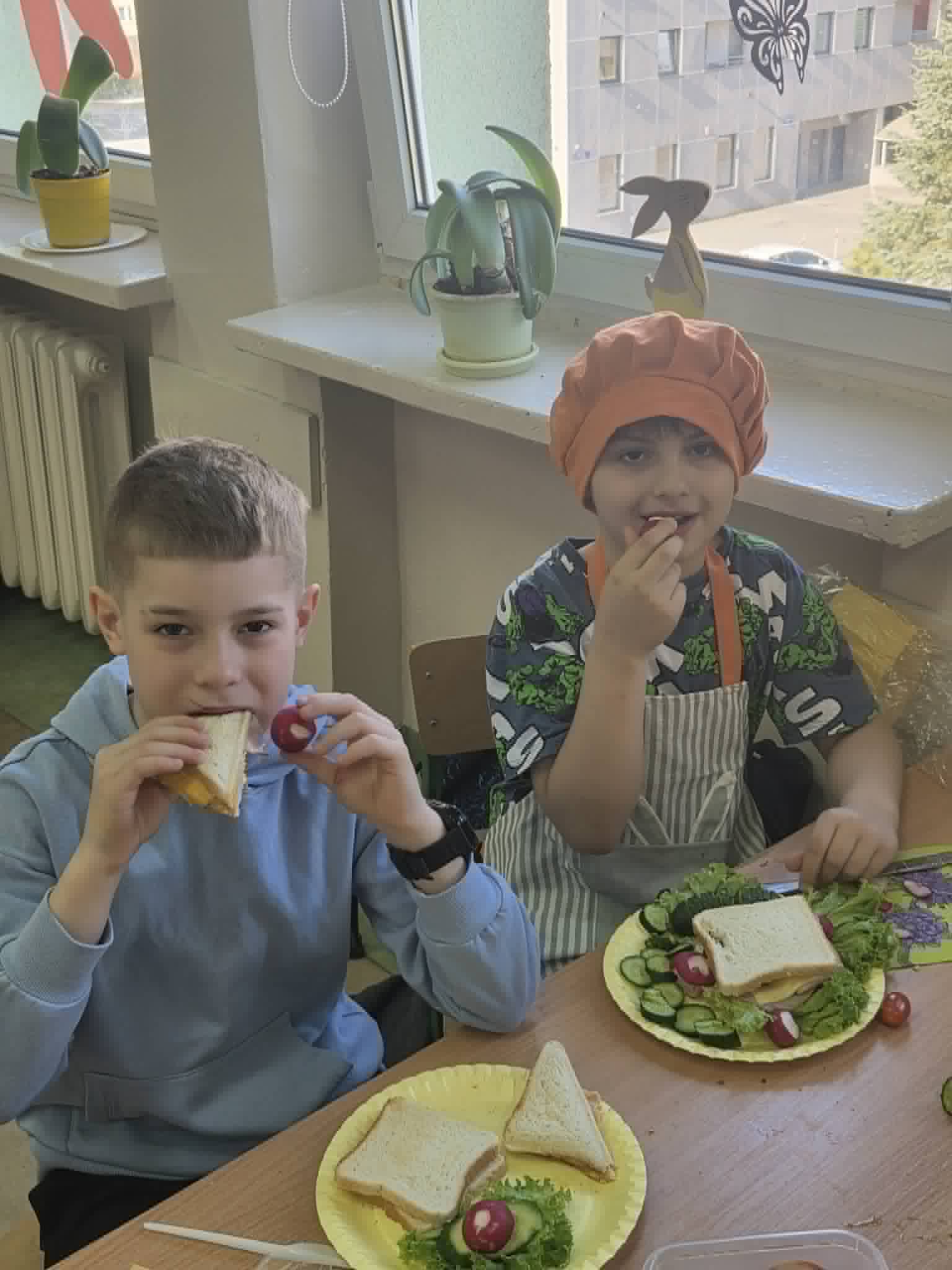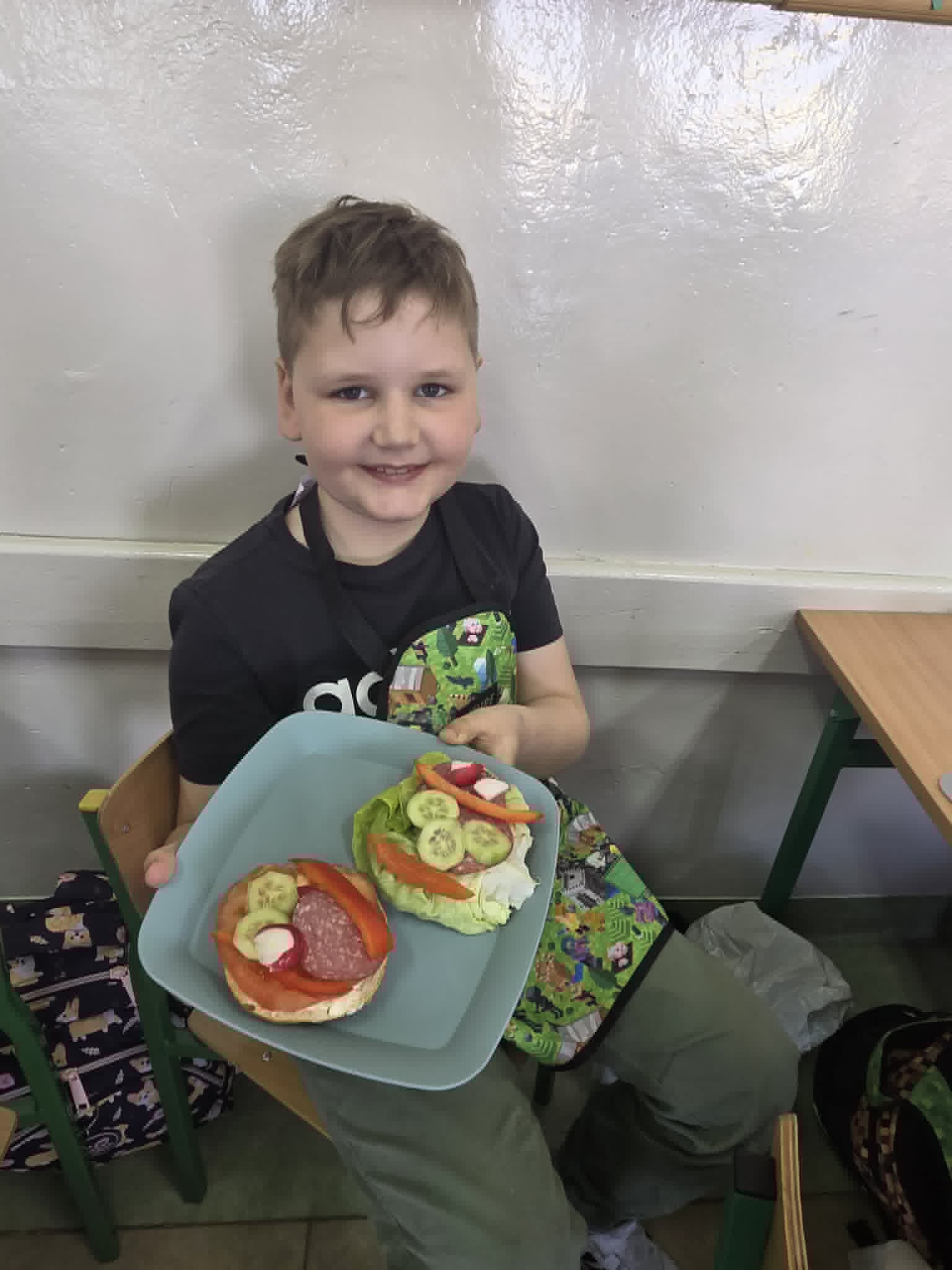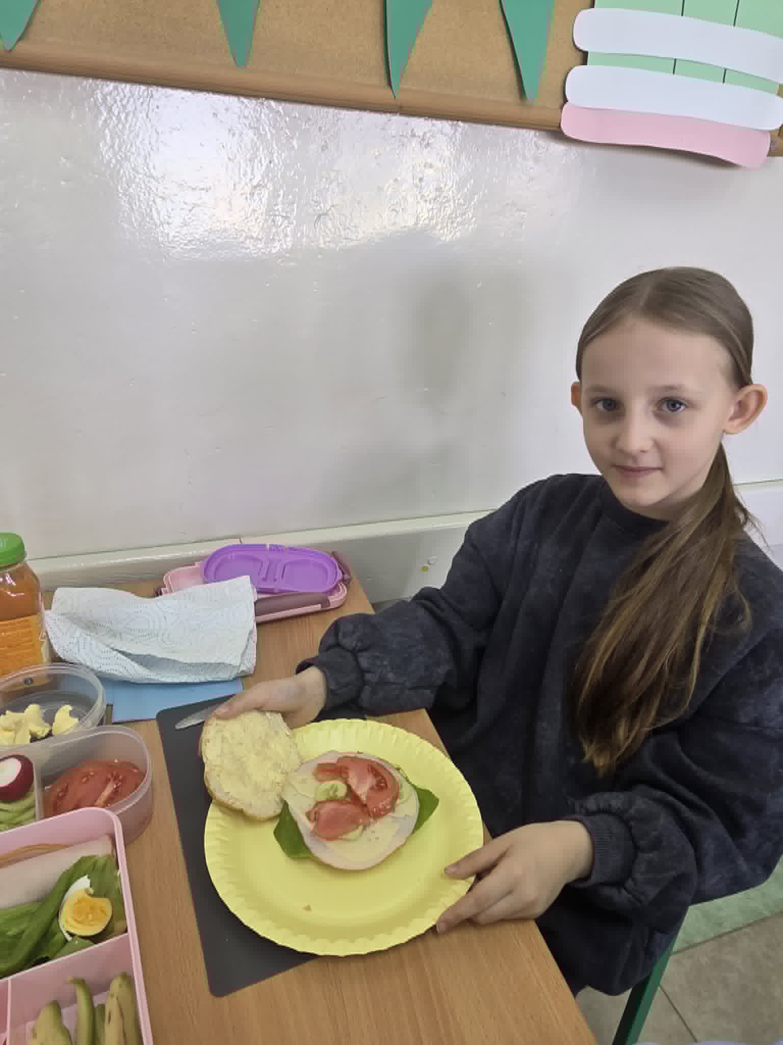 W klasie II a odbyło się wyjątkowe „zdrowe śniadanko”, podczas którego uczniowie mieli okazję samodzielnie przygotować pyszne i wartościowe posiłki. Na stołach pojawiły się kolorowe kanapki pełne świeżych warzyw, zdrowych dodatków oraz kreatywnych kompozycji, które zachęcały do jedzenia.