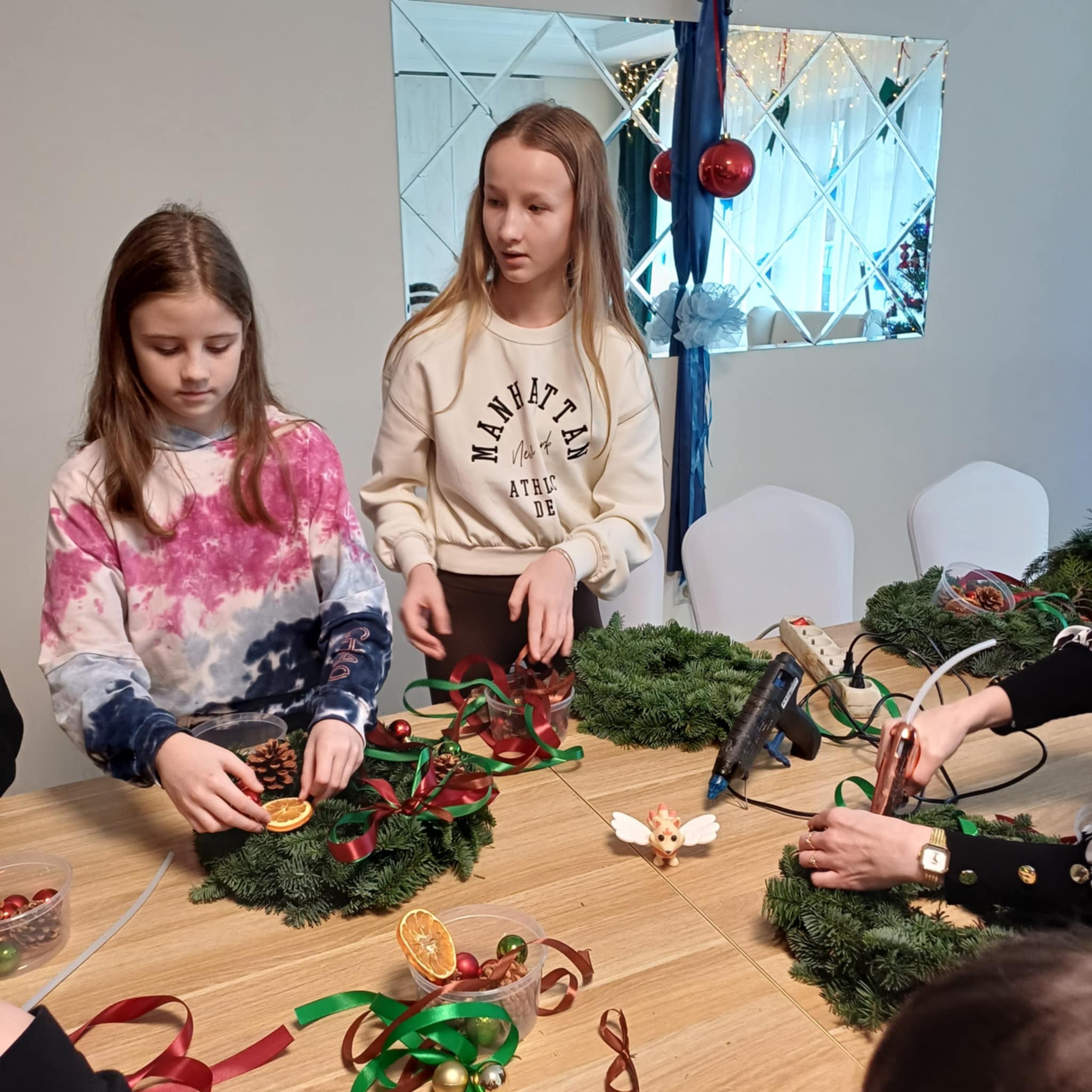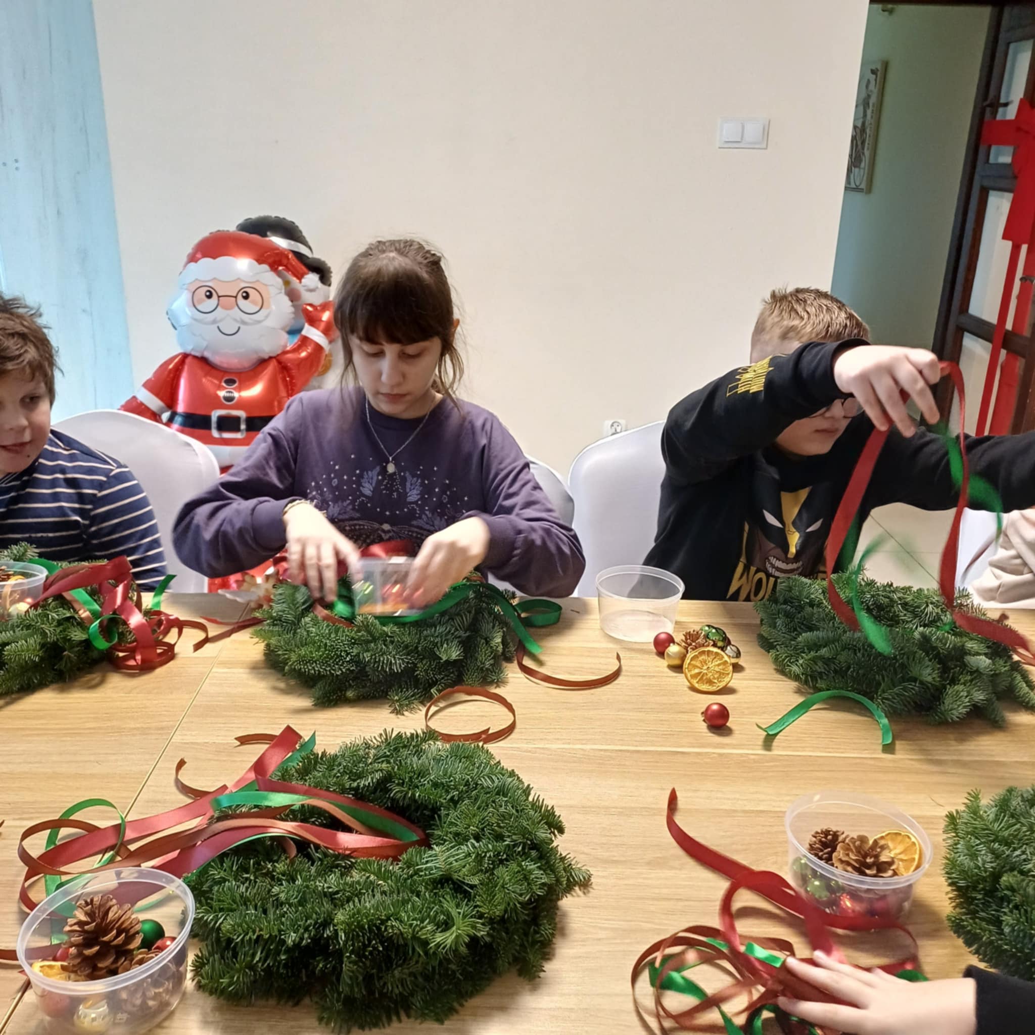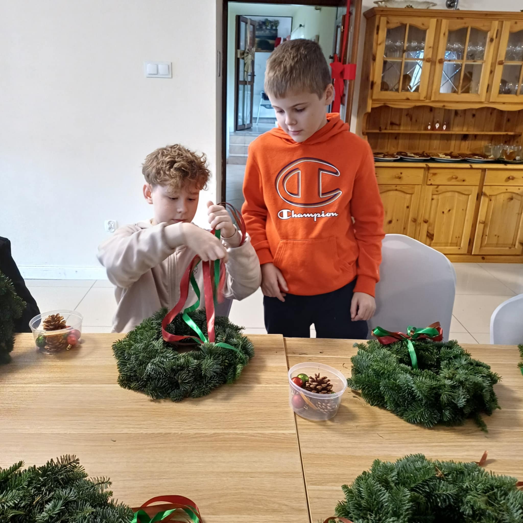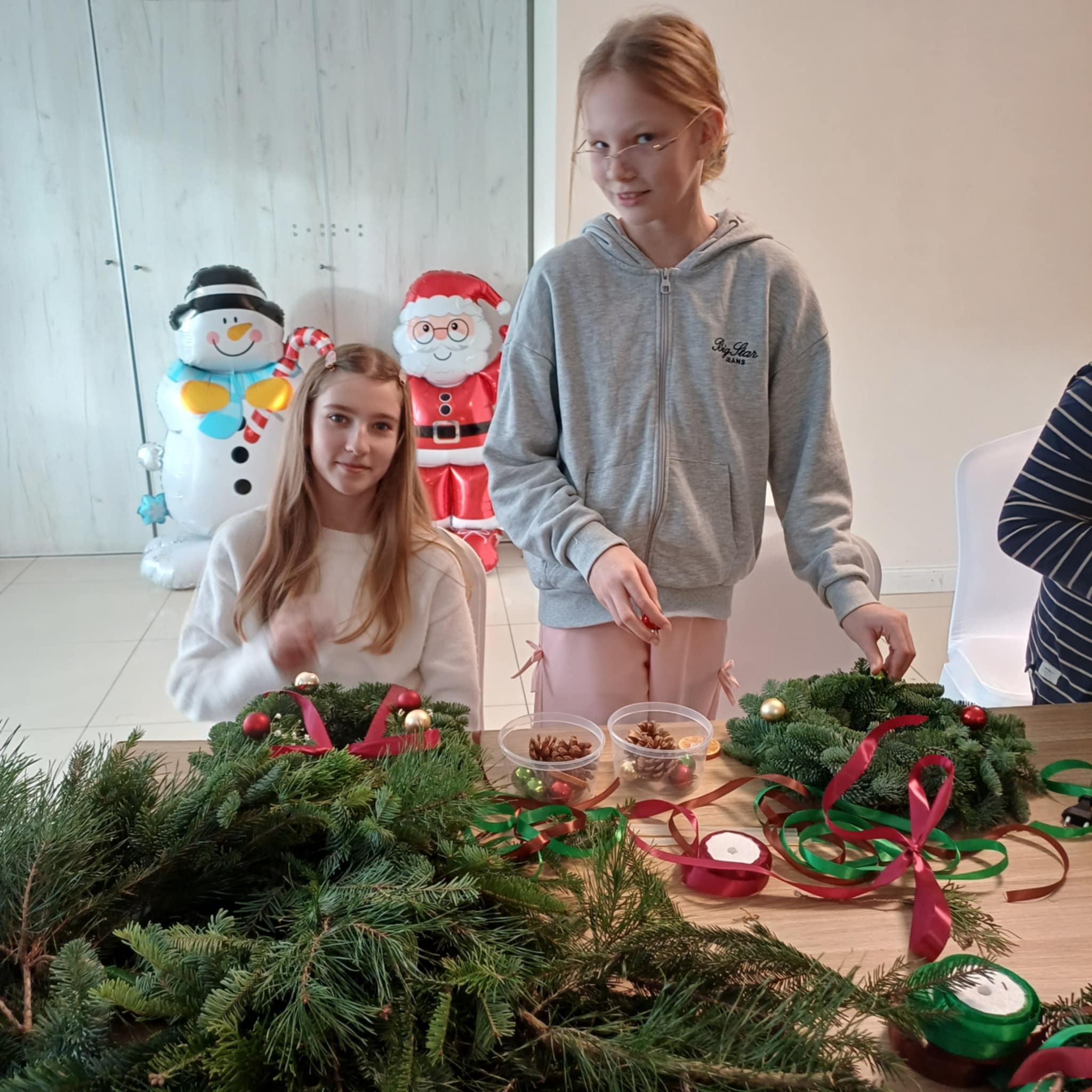 1 grudnia klasa 5c została zaproszona do restauracji „Tradycja”, gdzie w prawdziwie świątecznym nastroju odbyły się warsztaty tworzenia stroików bożonarodzeniowych, zorganizowane przez mamy z Rady Rodziców. W świątecznej scenerii, z choinką w tle, uczniowie z zapałem przystąpili do pracy. Każdy stroik był wyjątkowy, wykonany z dużym zaangażowaniem i sercem. Nie zabrakło także miłego akcentu – słodkiego poczęstunku, przygotowanego przez rodziców jednego z uczniów, co jeszcze bardziej podkreśliło świąteczną atmosferę tych wyjątkowych zajęć. To pełne radości, twórczej energii i świątecznej magii spotkanie z pewnością na długo pozostanie w pamięci całej klasy.