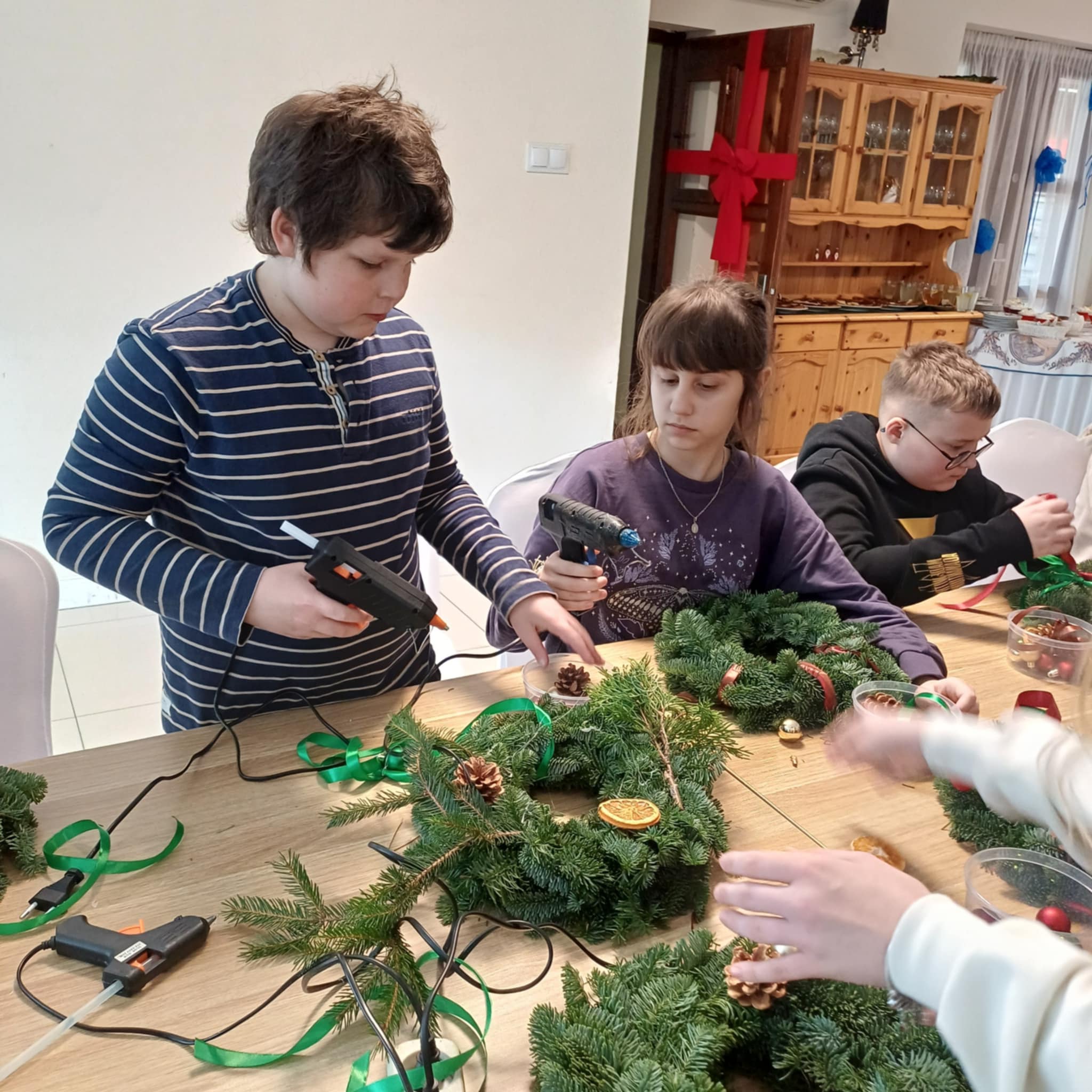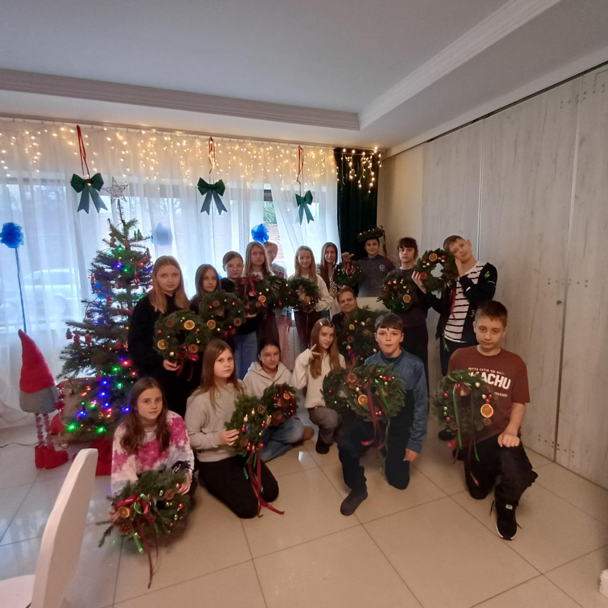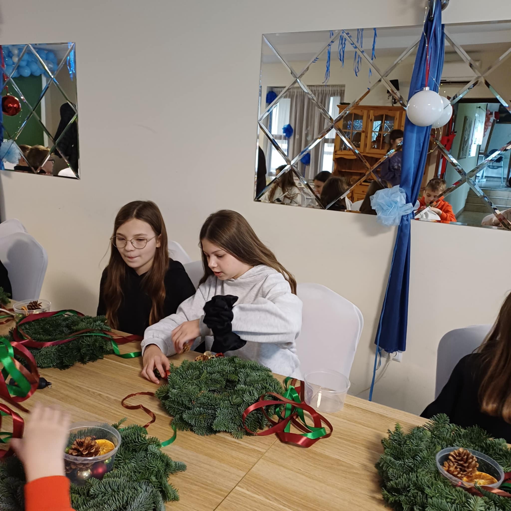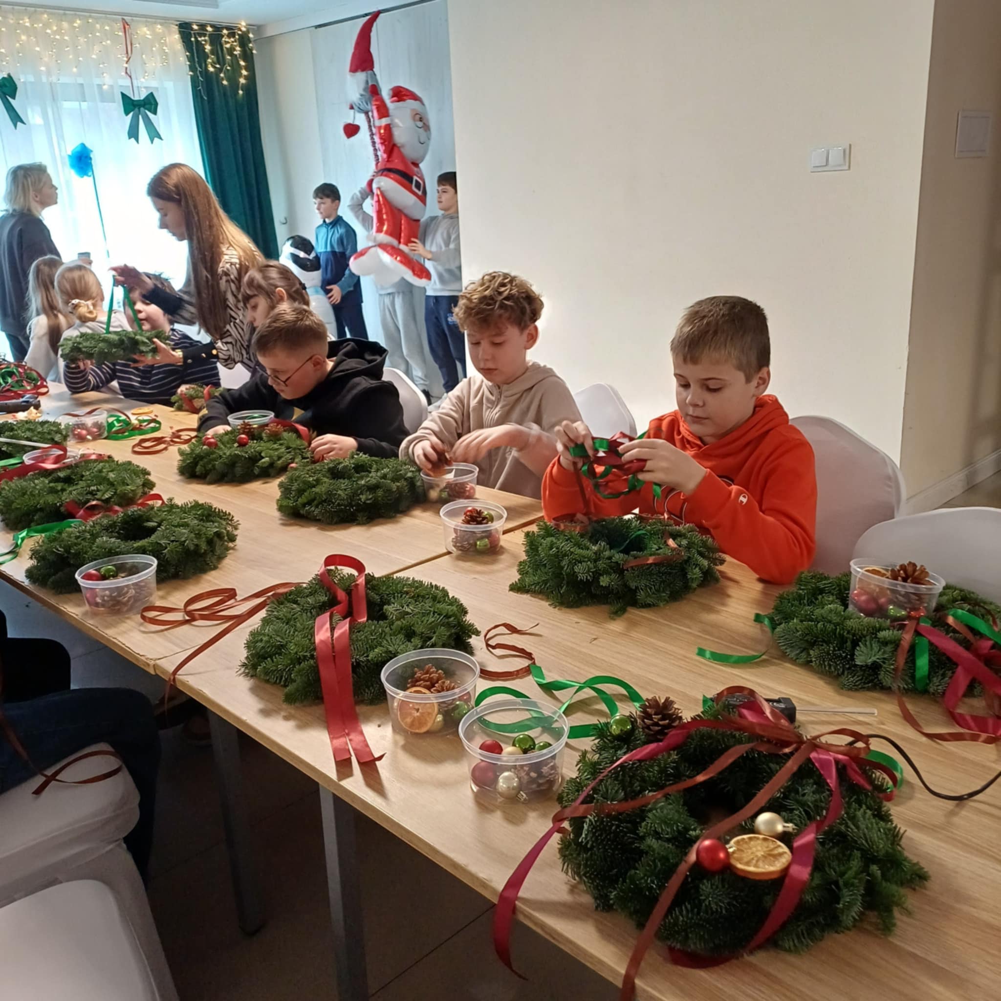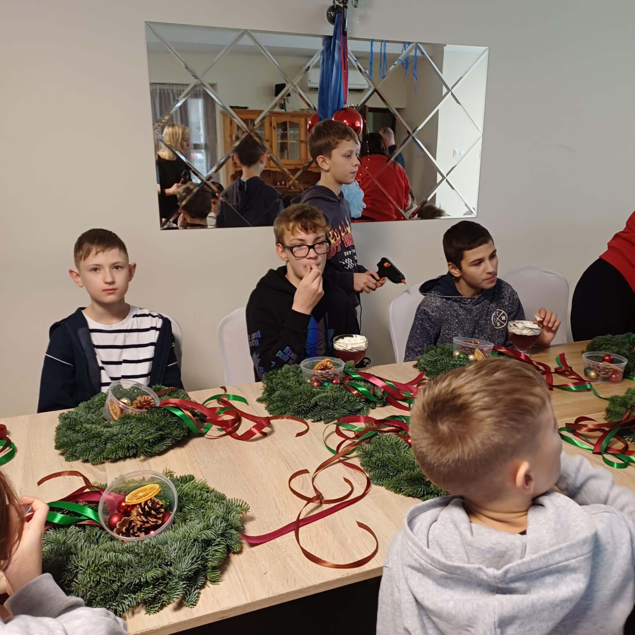 1 grudnia klasa 5c została zaproszona do restauracji „Tradycja”, gdzie w prawdziwie świątecznym nastroju odbyły się warsztaty tworzenia stroików bożonarodzeniowych, zorganizowane przez mamy z Rady Rodziców. W świątecznej scenerii, z choinką w tle, uczniowie z zapałem przystąpili do pracy. Każdy stroik był wyjątkowy, wykonany z dużym zaangażowaniem i sercem. Nie zabrakło także miłego akcentu – słodkiego poczęstunku, przygotowanego przez rodziców jednego z uczniów, co jeszcze bardziej podkreśliło świąteczną atmosferę tych wyjątkowych zajęć. To pełne radości, twórczej energii i świątecznej magii spotkanie z pewnością na długo pozostanie w pamięci całej klasy.