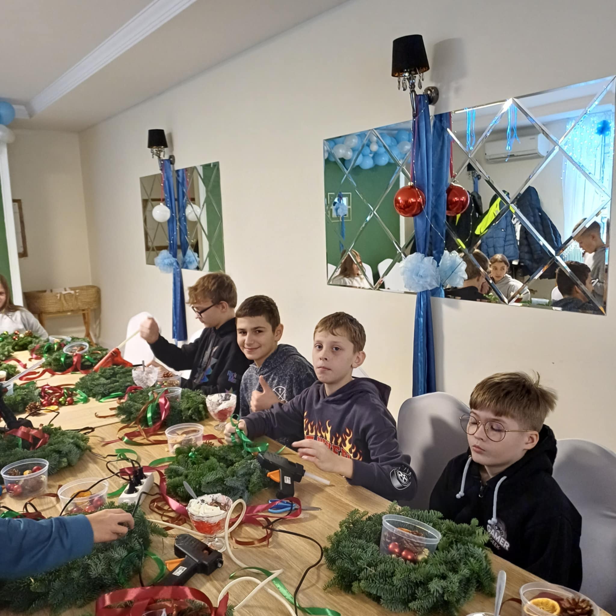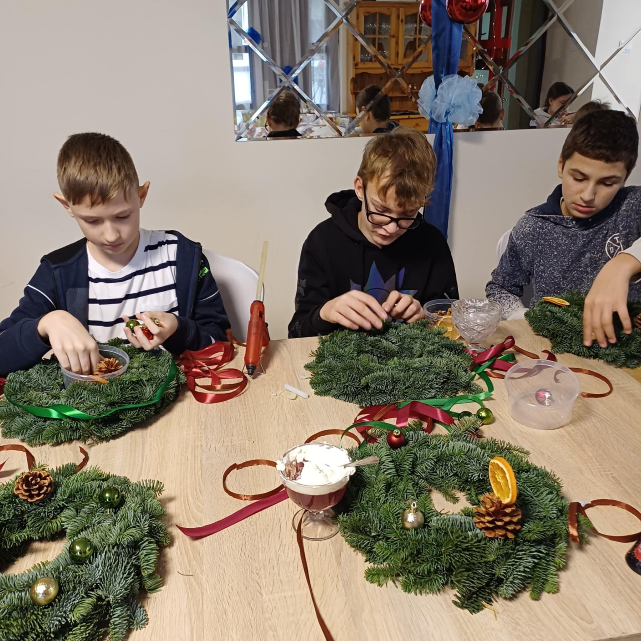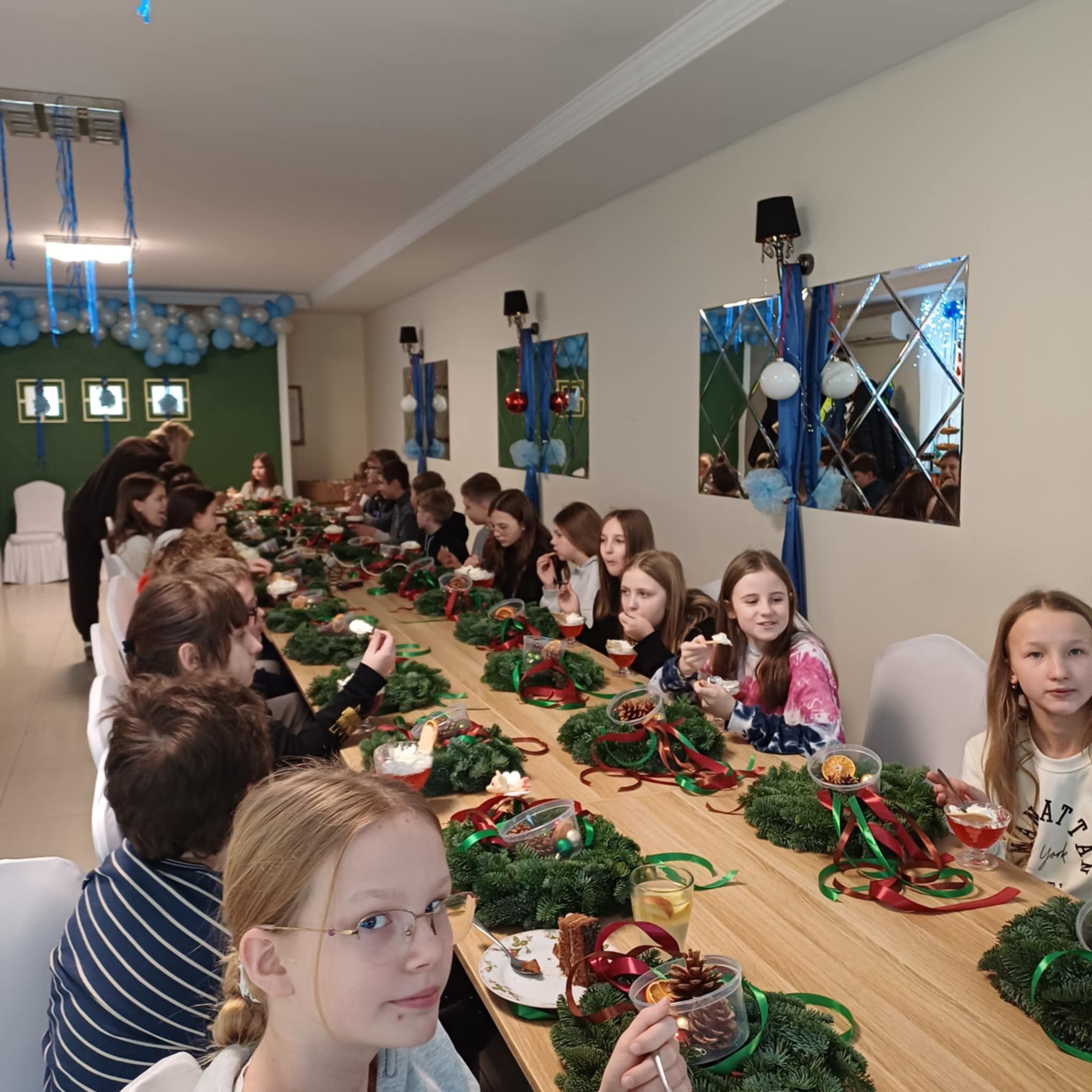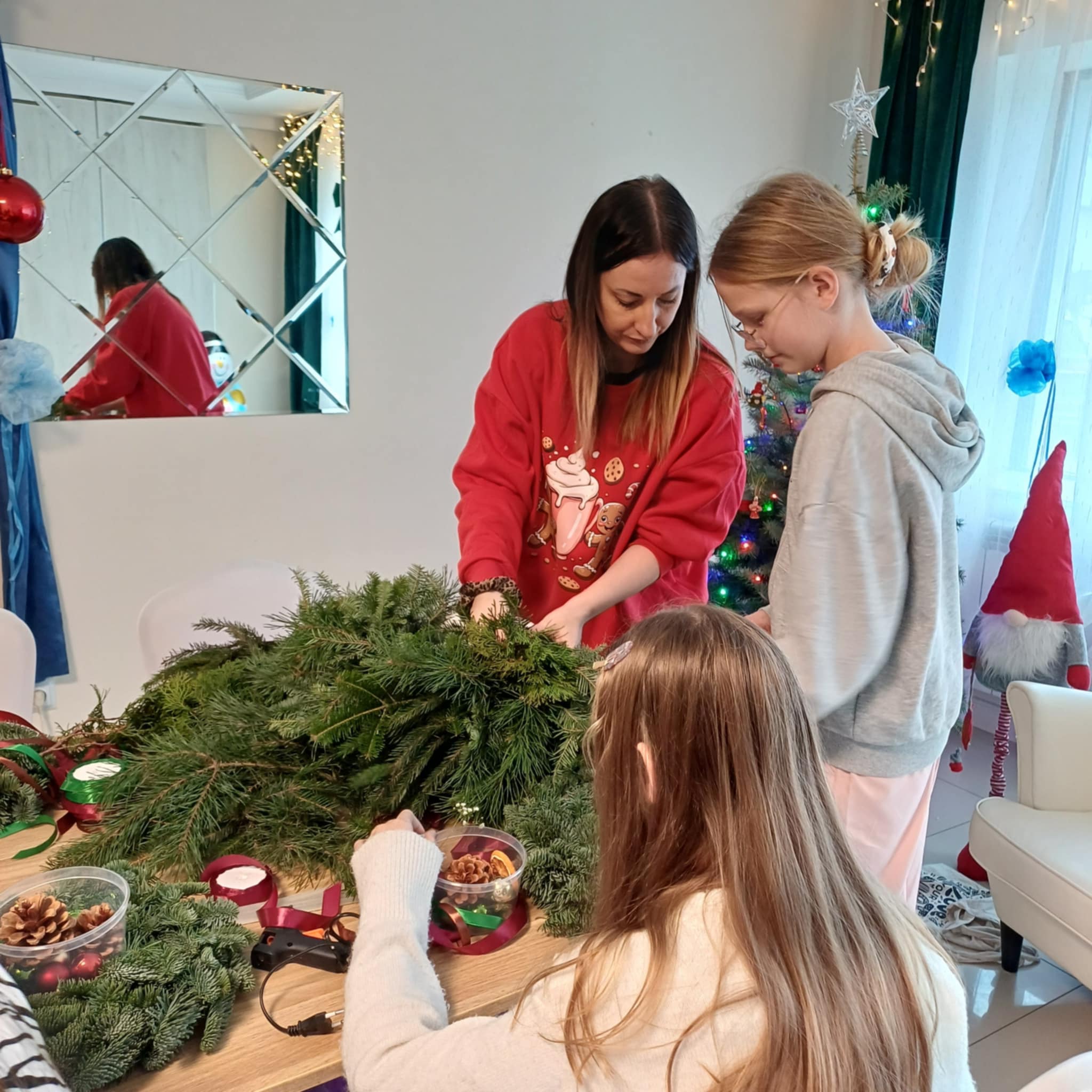 1 grudnia klasa 5c została zaproszona do restauracji „Tradycja”, gdzie w prawdziwie świątecznym nastroju odbyły się warsztaty tworzenia stroików bożonarodzeniowych, zorganizowane przez mamy z Rady Rodziców. W świątecznej scenerii, z choinką w tle, uczniowie z zapałem przystąpili do pracy. Każdy stroik był wyjątkowy, wykonany z dużym zaangażowaniem i sercem. Nie zabrakło także miłego akcentu – słodkiego poczęstunku, przygotowanego przez rodziców jednego z uczniów, co jeszcze bardziej podkreśliło świąteczną atmosferę tych wyjątkowych zajęć. To pełne radości, twórczej energii i świątecznej magii spotkanie z pewnością na długo pozostanie w pamięci całej klasy.