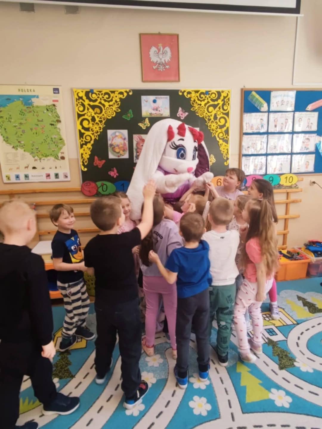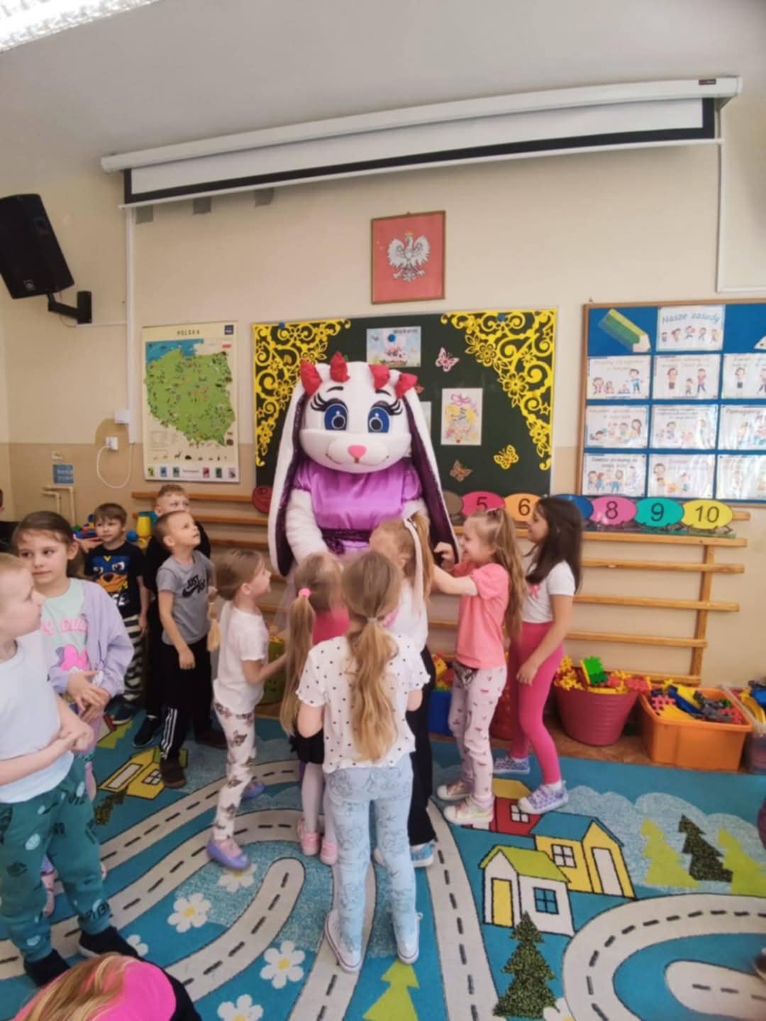 Do naszego przedszkola przykicał wspaniały gość - Wielkanocny Zajączek. Odwiedził każdą grupę i zostawił w koszyczku niespodzianki, a radość dzieci była ogromna.