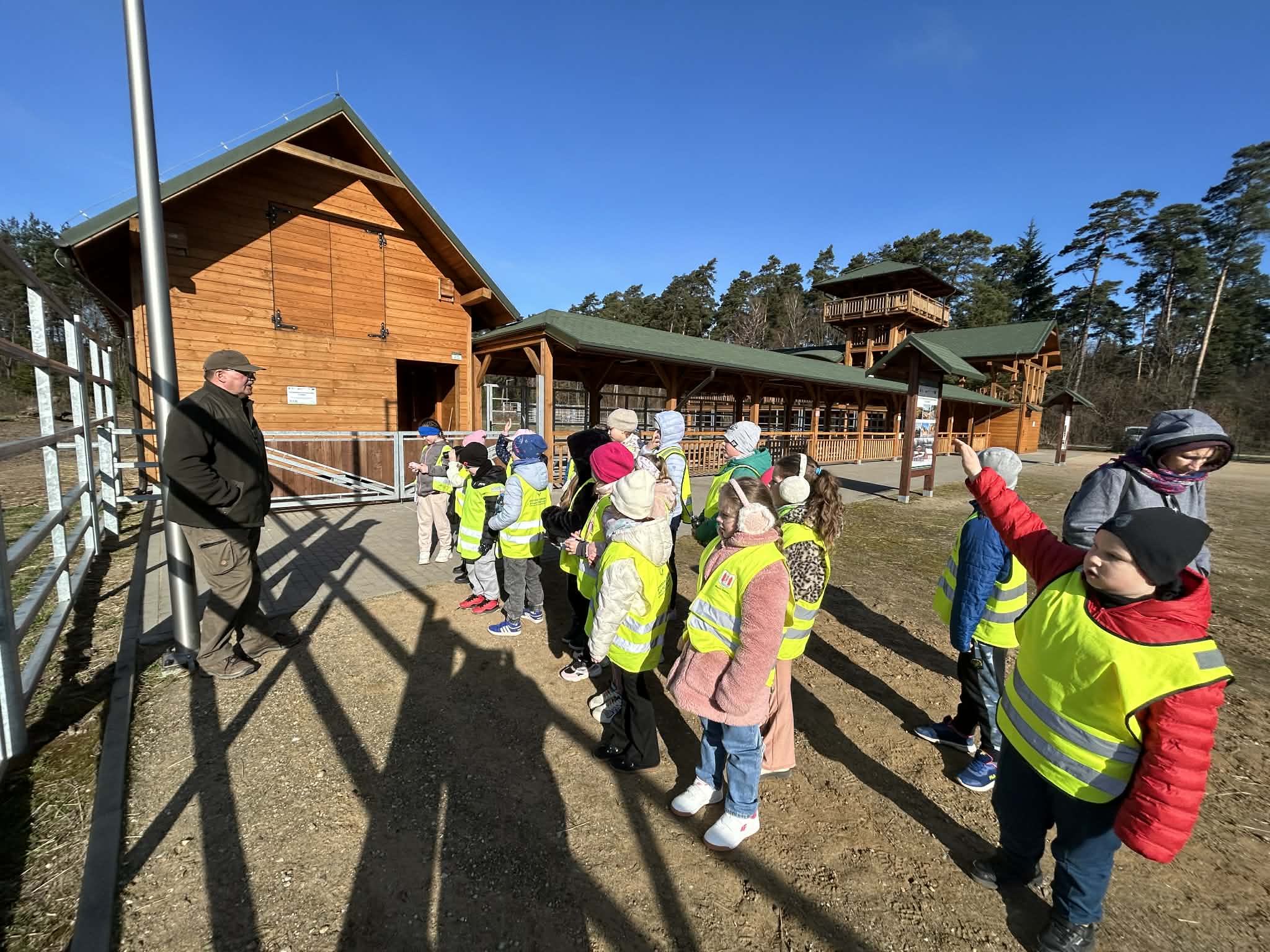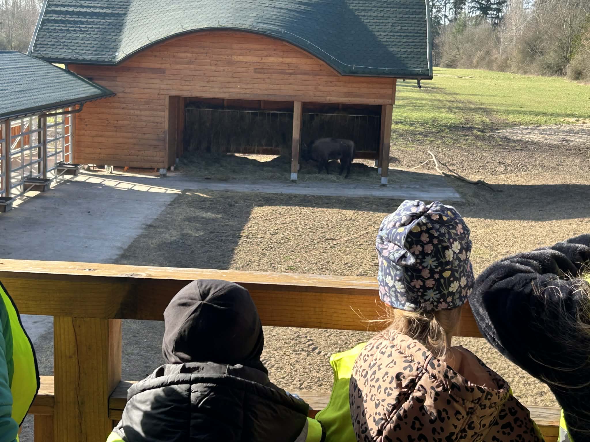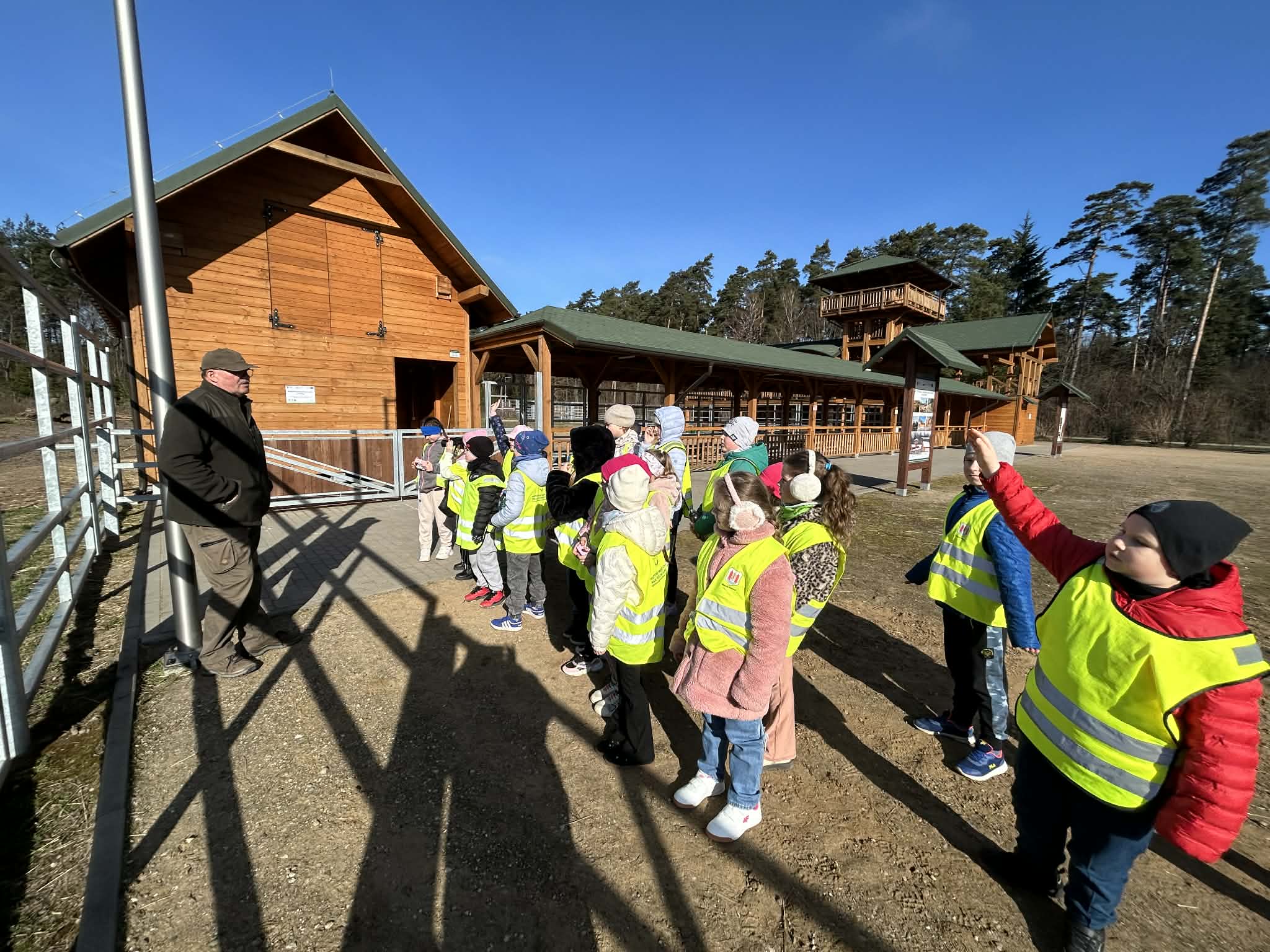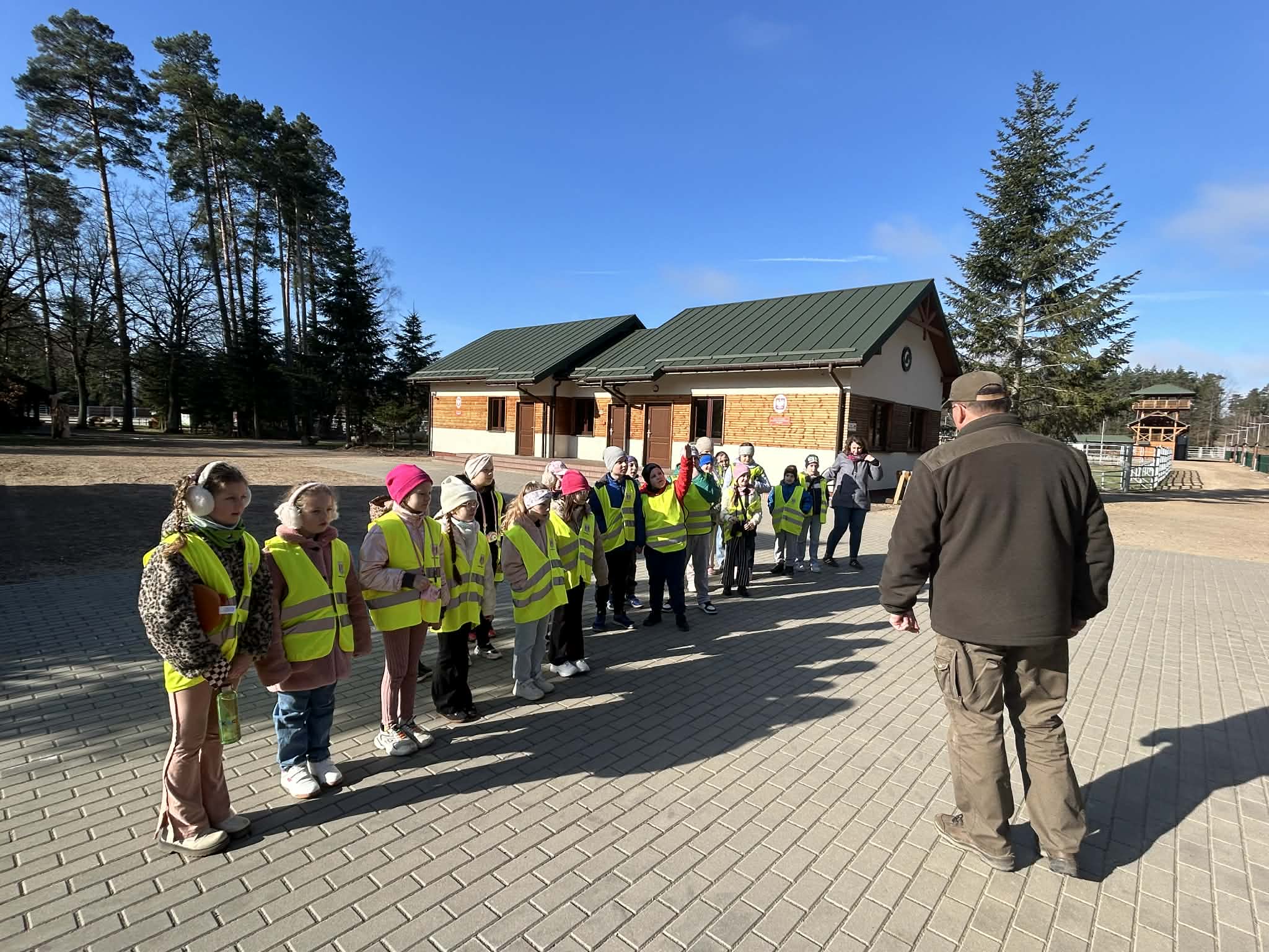 Na miejscu uczniowie mieli okazję zobaczyć żubry z bliska. Te imponujące zwierzęta wzbudziły ogromne zainteresowanie i podziw. Dzieci dowiedziały się wielu ciekawych informacji o ich życiu, zwyczajach oraz o tym, jak ważna jest ich ochrona. Spacer po zagrodzie był nie tylko przyjemny, ale także bardzo pouczający. Uczniowie zadawali pytania, dzielili się spostrzeżeniami i z dużym zaangażowaniem uczestniczyli w wycieczce.