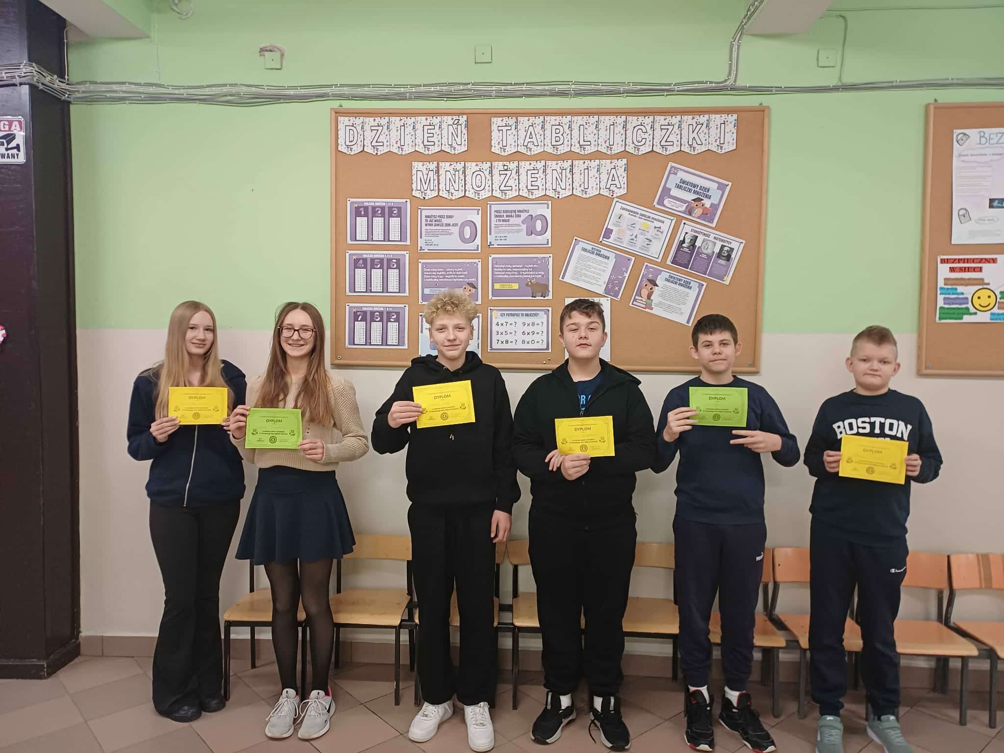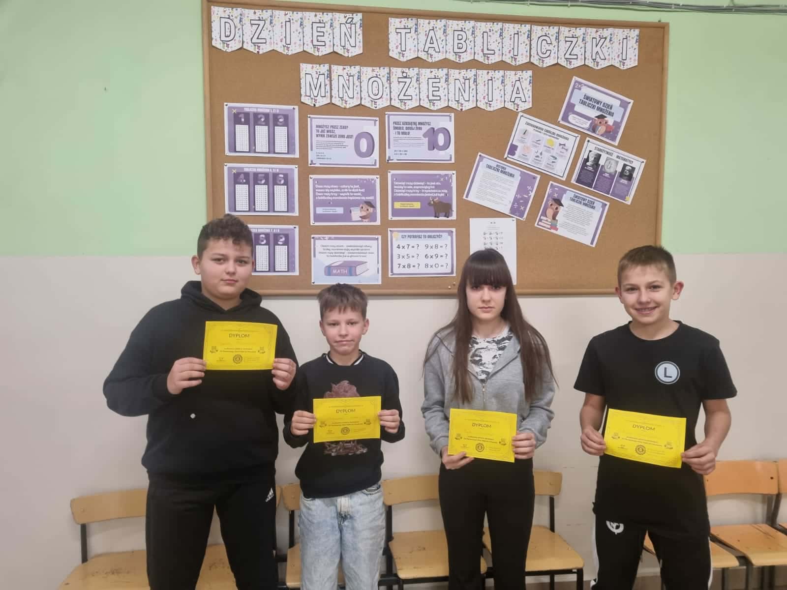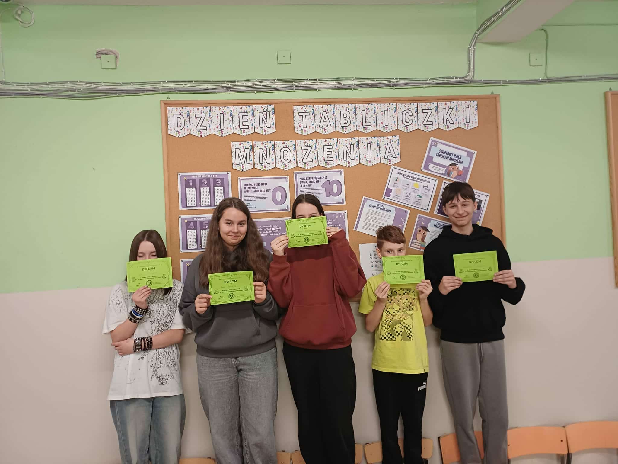W dniach 21-25 listopada uczniowie naszej szkoły podczas lekcji matematyki świętowali XV Światowy Dzień Tabliczki Mnożenia. To międzynarodowa akcja, która odczarowuje matematykę i udowadnia, że nauka przez zabawę przynosi najlepsze efekty. Uczniowie klas 4-8 mieli do wykonania około 20 przykładów mnożenia lub dzielenia. Każdy kto wykonał bezbłędne obliczenia zostawał Klasowym Mistrzem Tabliczki Mnożenia.