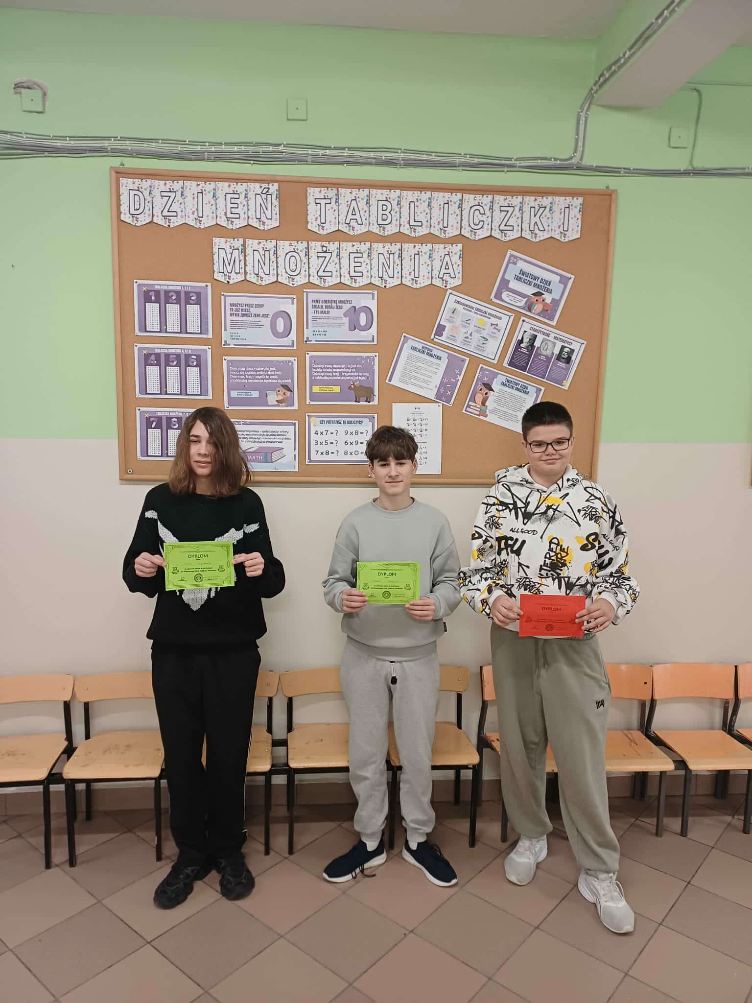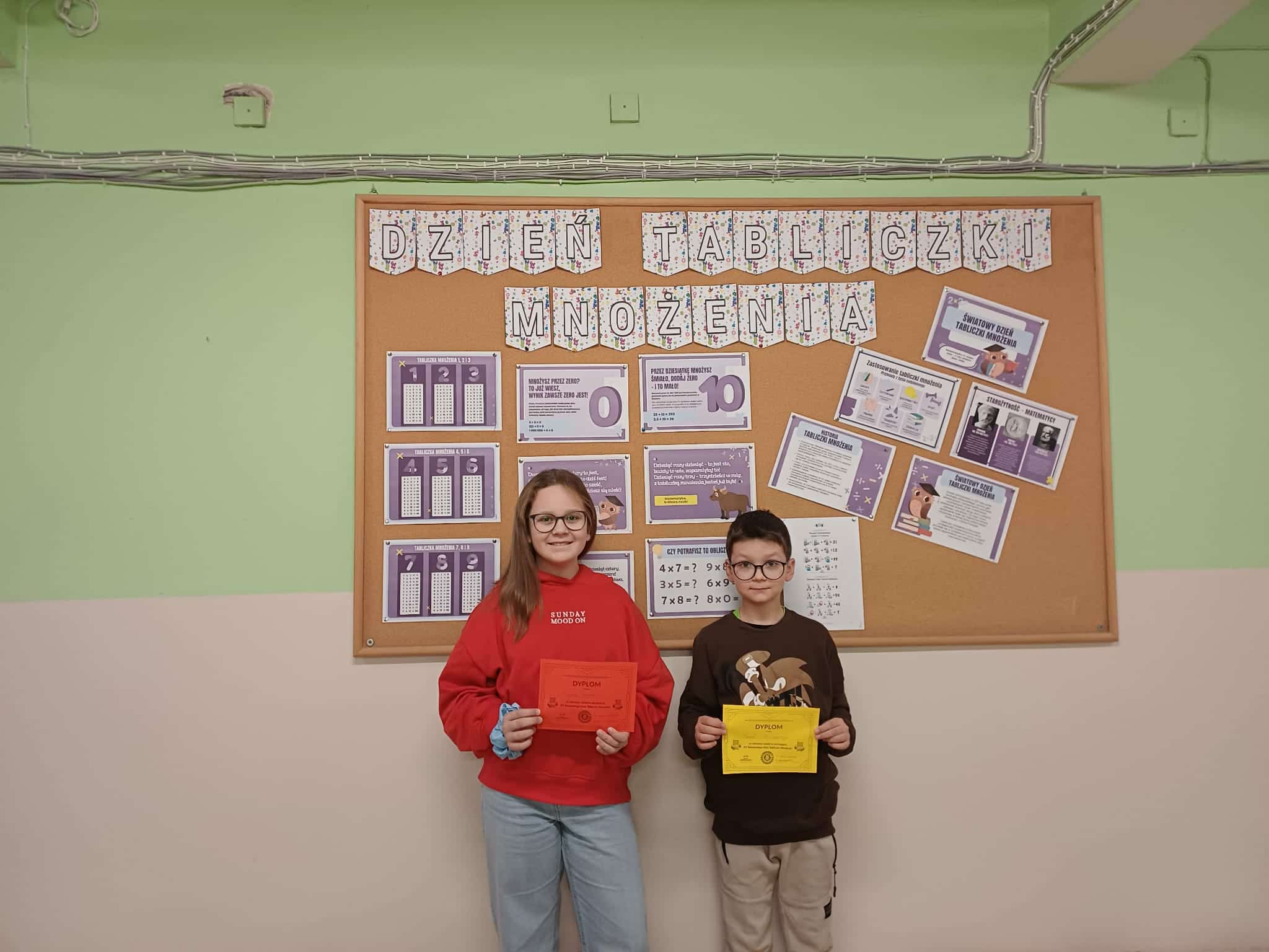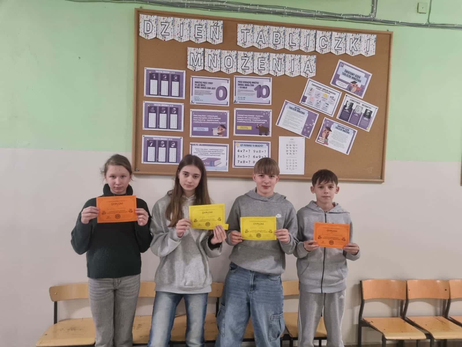 W dniach 21-25 listopada uczniowie naszej szkoły podczas lekcji matematyki świętowali XV Światowy Dzień Tabliczki Mnożenia. To międzynarodowa akcja, która odczarowuje matematykę i udowadnia, że nauka przez zabawę przynosi najlepsze efekty. Uczniowie klas 4-8 mieli do wykonania około 20 przykładów mnożenia lub dzielenia. Każdy kto wykonał bezbłędne obliczenia zostawał Klasowym Mistrzem Tabliczki Mnożenia.