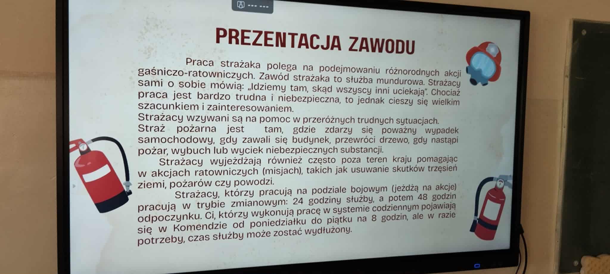 Uczniowie klasy 8 d w ramach projektu: „Zawody naszych marzeń” gościli panią Izabelę Ostrowską, która opowiedziała uczniom o zawodzie strażaka. Bardzo dziękujemy za to niezwykle spotkanie
