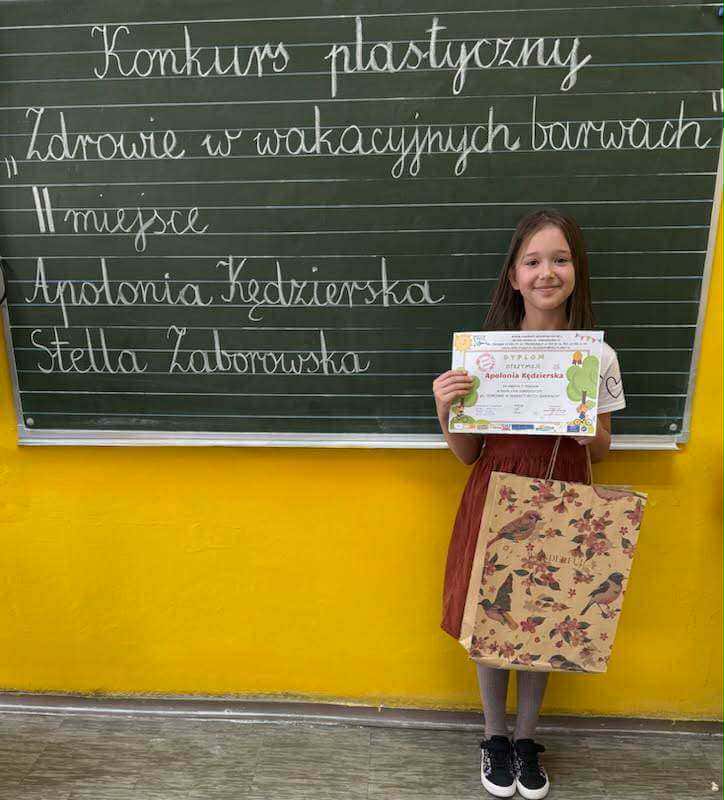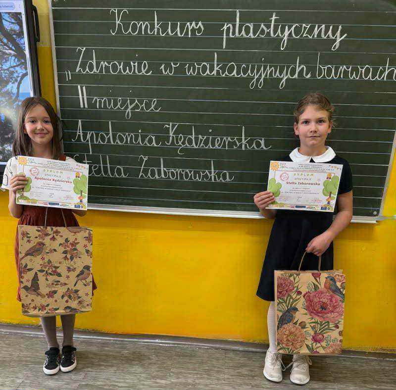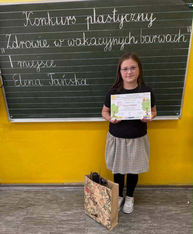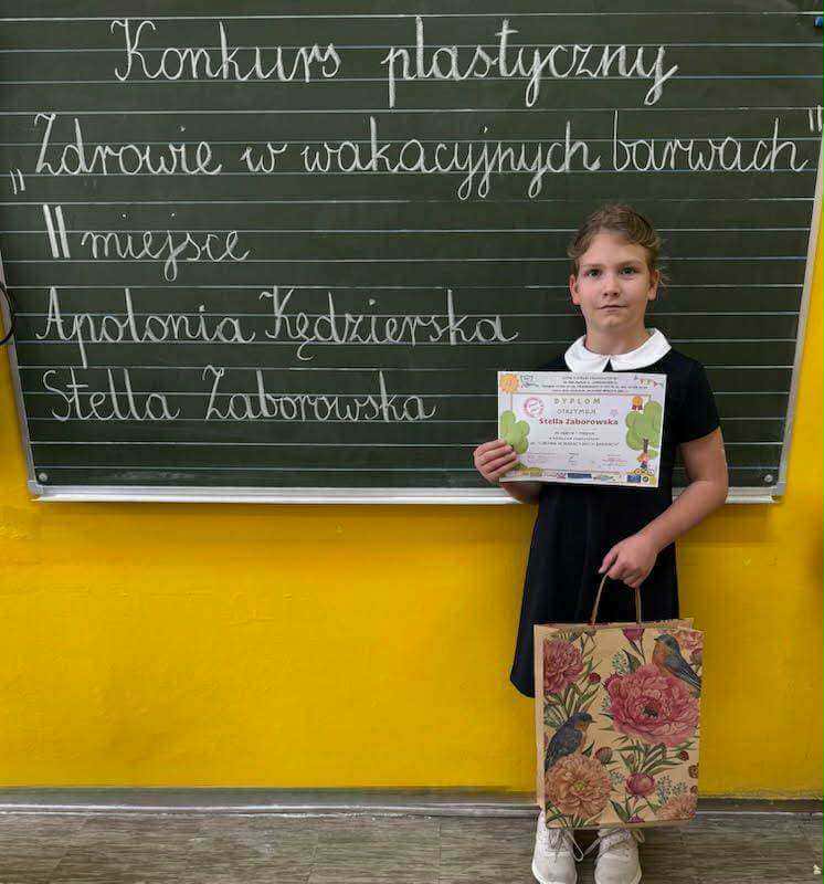 Grupa dziewcząt z klas I-III wzięła udział w konkursie plastycznym pt. „Zdrowie w wakacyjnych barwach” organizowanym przez Szkołę Podstawową nr 1. Konkurs adresowany był do uczniów z mławskich podstawówek, którzy uczęszczają do szkolnych świetlic.